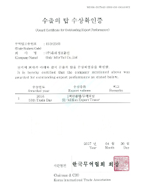 수출의 탑 수상확인증